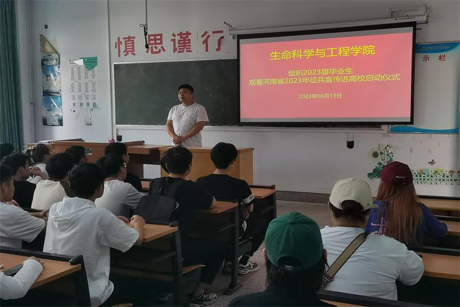(通讯员龚乐乐)为深入贯彻习近平强军思想,进一步做好老员工征兵工作。6月13日上午,E8官网登录入口组织2023届毕业生、全体辅导员在6#B207集中观看了“河南省2023年征兵宣传进高校活动启动仪式”。