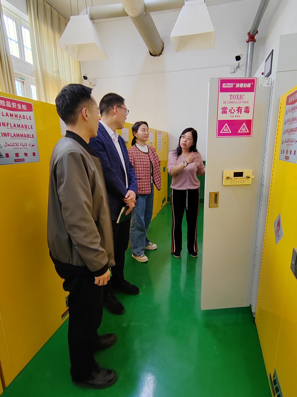 王哲在检查中指出,要严格执行校、院关于实验室安全管理的相关规章制度,做好危险化学品的安全管理工作,重视实验操作规范,杜绝安全隐患。同时要求各实验室安全工作必须抓日常、重规范,常抓不懈、防范未然,做好风险防控,为公司教学、科研提供强有力的支撑与保障。