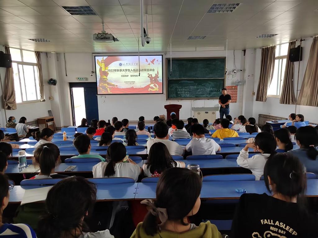 (通讯员 龚乐乐)为深入贯彻习近平强军思想,进一步落实公司及公司相关征兵工作要求,帮助2022级新生全面了解征兵政策,激发应征入伍热情。9月23日下午,公司组织召开以“青春有梦,强军有我”为主题的征兵政策宣讲会。会议由2020级辅导员龚乐乐主持,各年级辅导员及2022级全体同学参加了会议。