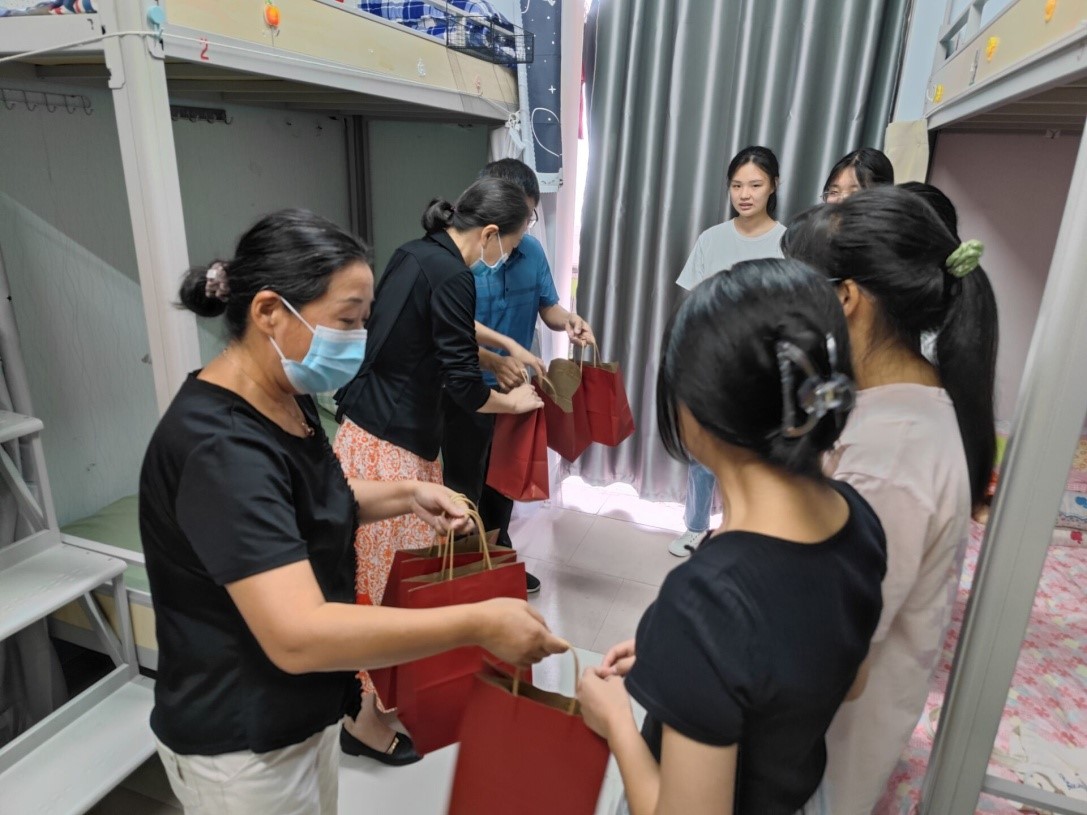 (通讯员 丁欢欢)为了让2022级新生感受到公司的关怀,同时也为了了解员工入校后的学习、生活情况,9月9日上午,副董事长吴晓红走进宿舍慰问新生送上亲切的关怀、祝福以及中秋慰问品。E8官网登录入口经理李冰冰、副书记冯兴华及辅导员陪同慰问。