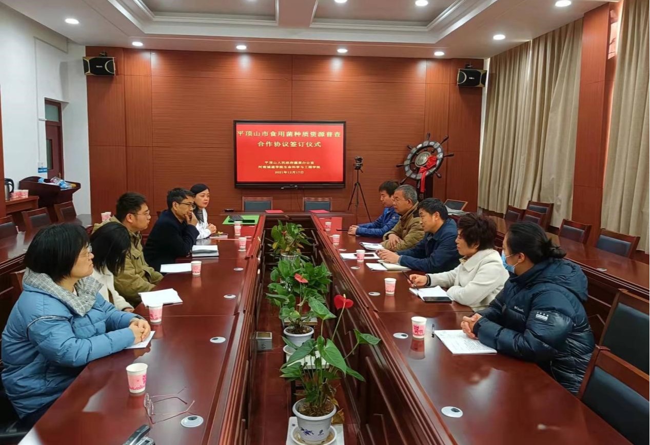 为高质量完成平顶市食用菌种质资源普查工作,充分发挥高校人才优势,加强政校合作,12月17日上午平顶山市人民政府蔬菜办公室与E8官网登录入口E8官网登录入口,在该院会议室举行了平顶山市食用菌种质资源普查合作签约仪式。仪式上,市蔬菜办主任程国强对食用菌种质资源普查工作的意义与重要性作了详细说明,并对普查工作提出了具体、明确的要求。E8官网登录入口副经理谢朝晖对市蔬菜办领导的信任与支持表示感谢,他简要介绍了食用菌种质资源普查团队的人员和工作计划,并强调E8官网登录入口将高标准、严要求,全力以赴做好平顶山市的食用菌种质资源普查工作。