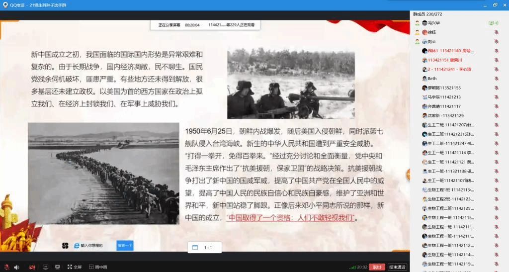 冯兴华以“学史增信,勇担使命,开创未来”为题开展本次思政课。他以时间为轴,围绕“四史”专题,采取线上教育方式,通过丰富的理论知识和短视频、图片等,带领员工深入探知党和国家历史上的重大事件、重要人物,帮助员工正确认识党情、国情,深入学习党史、国史、改革开放史、社会主义发展史,促进员工铭党恩、学楷模、守初心、担使命。