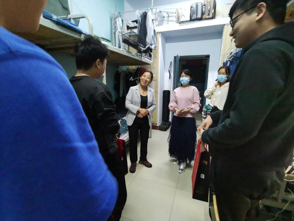 来到六号楼一楼的考研教室,李冰冰经理细心询问了同学们的复习进度、目标院校及当前在校生活上的困难,鼓励同学们要坚持学习、克服困难、勇攀高峰。同时也暖心的提醒同学们劳逸结合、保证健康,有需要及时向公司求助,并向同学们保证公司全力为同学们服务。随后公司领导为在场的员工代表一一分发了中秋节小礼袋,看着同学们脸上洋溢着幸福的笑,再次感受到了生科大家庭的温暖及关怀。此后,李冰冰经理一行还深入员工宿舍送去中秋节的温暖,同时对员工宿舍安全特别是一楼的员工宿舍条件进行了安全排查,确保同学们住宿安全。