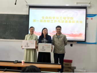 此次活动本着以球会友、锻炼交流、相互学习提高的精神,在和谐、激励的氛围中进行。比赛在吴晓红开球后拉开帷幕,整个过程中教师们一次次娴熟的发球、推挡、削球和扣杀等,充分地展现出球员精湛的球技,现场观众此起彼伏的喝彩声和加油声一次次把比赛现场的精彩气氛推向高潮。经过2天的激烈角逐,最后黄玮玮老师获得女子单打冠军,吴淼老师获得男子单打冠军,生物技术系获得团体赛第一名,夺得生科杯。