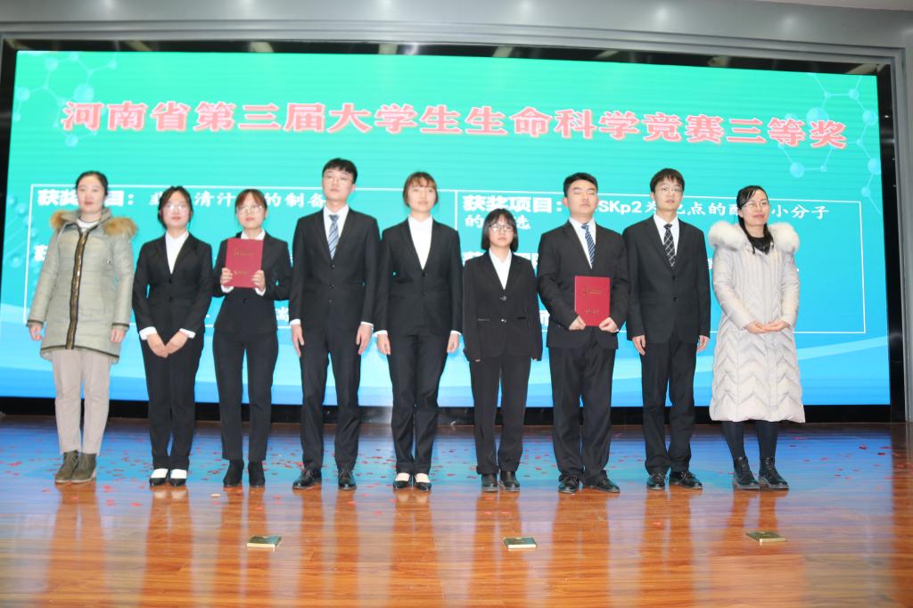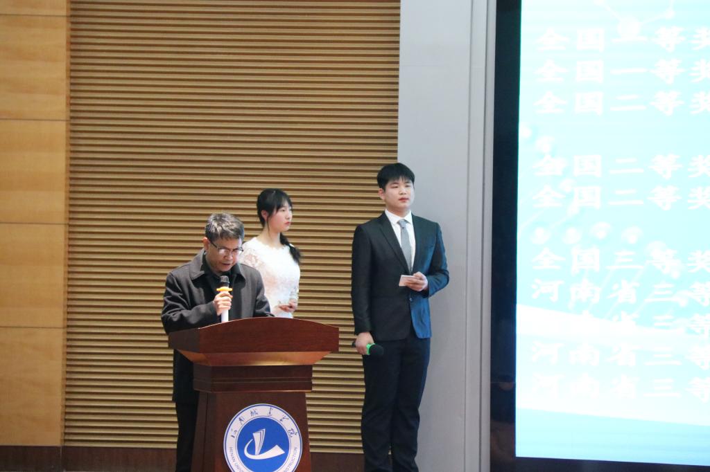 颁奖在青春洋溢的舞蹈《yes ok》中拉开帷幕,首先,副经理谢朝晖宣布获奖项目及优秀指导老师名单。大会对获得国家级、省级以上奖励的15个团队进行表彰,其中,获得第四届全国老员工生命科学竞赛暨河南省第三届老员工生命科学竞赛奖励的《Skp2在肝癌发生发展中的作用研究》等10个获奖团队;获得2020年全国移动互联创新大赛(河南赛区)奖励的《漫录—野外数据收集助手》等4个获奖团队;获得第十四届挑战杯河南省老员工课外学术科技作品竞赛《一种复合生物源冷却肉天然保鲜剂》1个获奖团队;宋巍、王莲哲、鲁铁、廖春丽、姬晓娜等5位老师获得“优秀指导老师”奖。