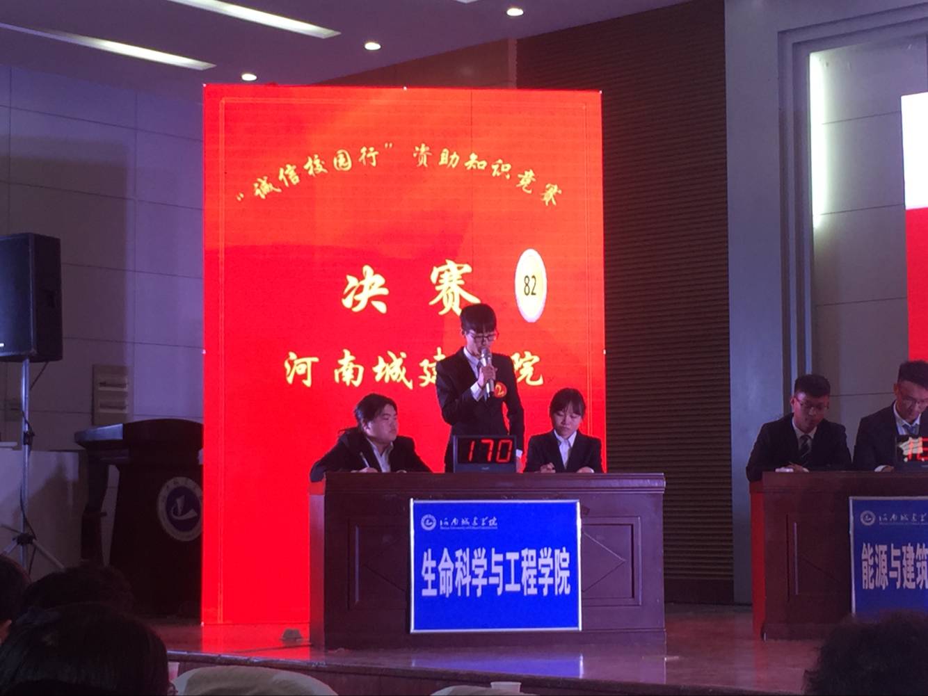 (通讯员:刘欢)为了让同学们更多的了解有关“助学贷款,奖学金申请与发放,员工个人诚信培养”问题的相关知识,增强自我责任意识,营造浓厚的校园诚信氛围。公司举行了“诚信校园行知识竞赛”活动。并于2017年12月26日于行政楼进行了总决赛。