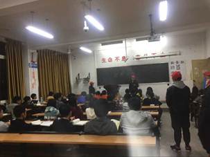 (同学们认真听志愿者宣传)
