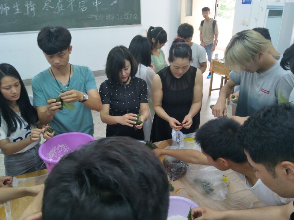 端午节与春节、清明节、中秋节并称为中国民间的四大传统节日。在我国素来便有端午佳节吃粽子的习俗。在此次活动中,E8官网登录入口师生们共聚一堂,开怀畅谈,同学们包粽子,忙碌而充实,整个过程充满了愉悦的气氛。E8官网登录入口党总支副书记焦学然,团总支书记学工办主任卫琳娜老师及辅导员靳晓霞老师不仅为同学们送来了节日的祝福,更令同学们体会到了公司和院系对他们的关怀。