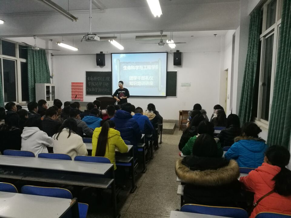 (通讯员:胡阳)2016年11月27日,E8官网登录入口团学干部礼仪知识培训讲座在六号楼401教室胜利召开,本次讲座由生科员工会黄飞主席主讲。