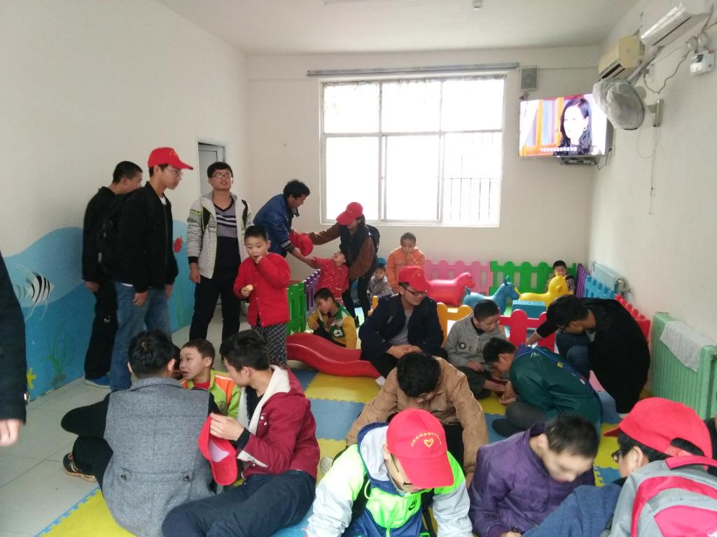 下午一点,在老师的带领下,志愿者们前往福利院,开始了本次的爱心之旅。在获得福利院经理的允许后,志愿者们与全体儿童开了一个小型见面会,之后各自融入到小朋友们当中。拿着为孩子们特意准备的礼物,志愿者们很快与小朋友们打成一片,共同嬉戏、学习。在活动中,小朋友们与志愿者其乐融融,整个场面热闹无比,到处都充斥着孩子们的欢笑声。望着小朋友们那洋溢着幸福的笑脸,这一天的辛苦劳累仿佛都在此刻化为乌有。最后志愿者们与孩子们合影留恋,记录下这美好的一刻,让这美丽的场景一直保存下去。随后在孩子们的依依不舍中,志愿者们离开了福利院,踏上了归程。