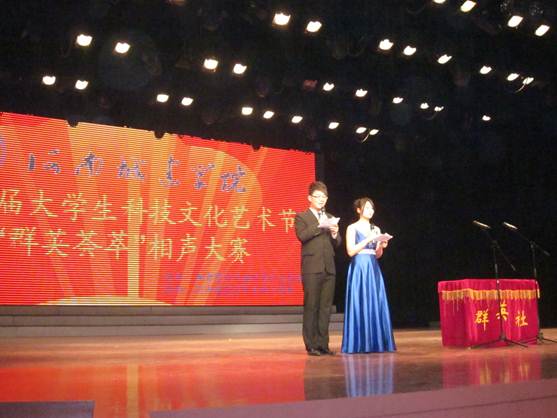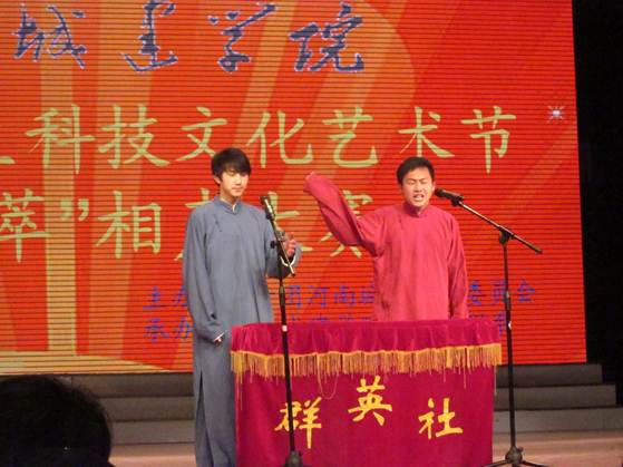 (通讯员张红波)3月16日下午,平顶山市文化艺术中心变成了一片笑的海洋,从下午14:30开始至17:30,由院团委主办,生物工程系承办的“E8官网登录入口第六届老员工科技文化艺术节‘群英荟萃’相声大赛”决赛阶段的比赛,以其全新的作品,精彩的表演,火爆的效果,超值的享受,博得了院团委及系部领导老师,各系员工代表,以及部分市民共400余名观众的一致好评。
