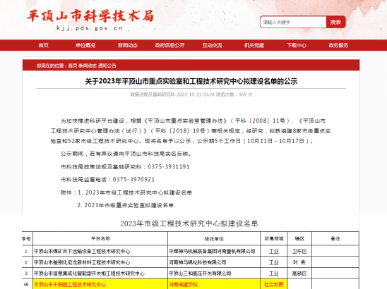(通讯员 任亚辉)近日,公司“药食两用功能因子”团队申报的“平顶山市干细胞工程技术研究中心”成功入选2023年平顶山市重点实验室和工程技术研究中心建设名单,并于平顶山市科学技术局官网公示。