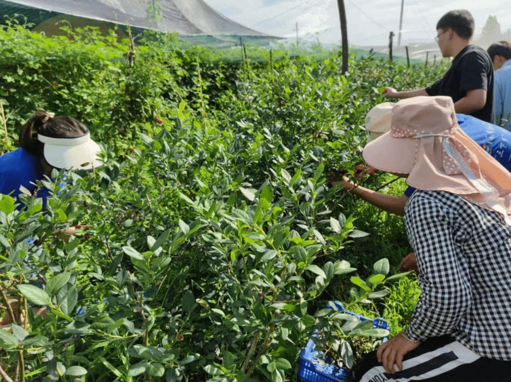 实践队成员深入田间地头与当地种植户一起进行采摘、分装、夏剪等各个环节的农业实践操作。并以搬走岭村的农作物种植情况以及蓝莓产业的发展情况为中心,进行实地考察、访谈调研,助力乡村蓝莓产业发展。