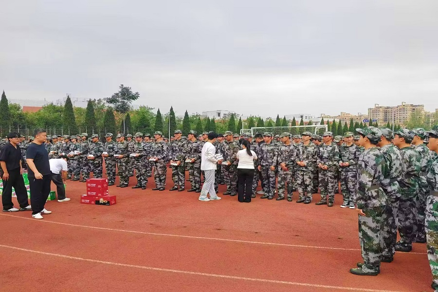 朱涛代表公司向辛勤付出的教官表示衷心感谢,向新生们送上节日的祝福和诚挚的问候。她表示,在寓意团圆、和谐和美满的中秋佳节,希望同学们在赏月、品尝月饼之余,通过电话、网络与父母和亲友分享节日的快乐。并指出,军训作为大学新生的“第一堂课”,不仅是一种身体的锻炼,更是一次心灵的洗礼和意志的磨炼,愿同学们把军训精神内化为不断超越自我的坚强动力,努力锤炼自己。同时,也提醒大家注意军训安全,合理安排作息,确保以最佳状态高质量完成军训任务。