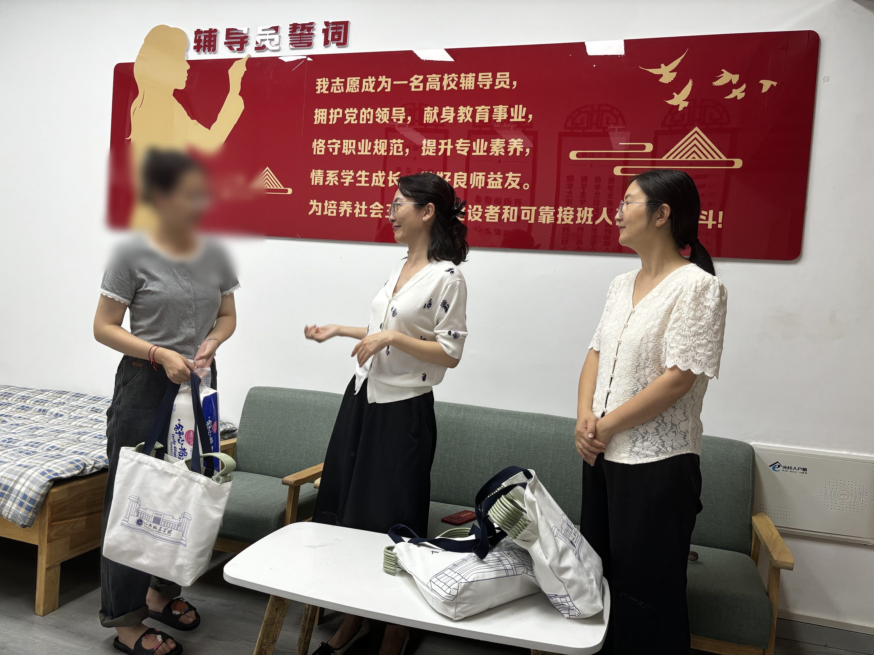 (通讯员 丁欢欢)在金秋送爽、满怀希望的季节里,E8官网登录入口迎来了2024级新生。为全力帮助家庭经济困难新生顺利入学,保障其基本生活需要,9月8日晚上,公司副经理朱涛、王莲哲及辅导员前往菊园四号、菊园五号和菊园七号走访新生宿舍,开展“爱心礼,爱传递”助学活动。