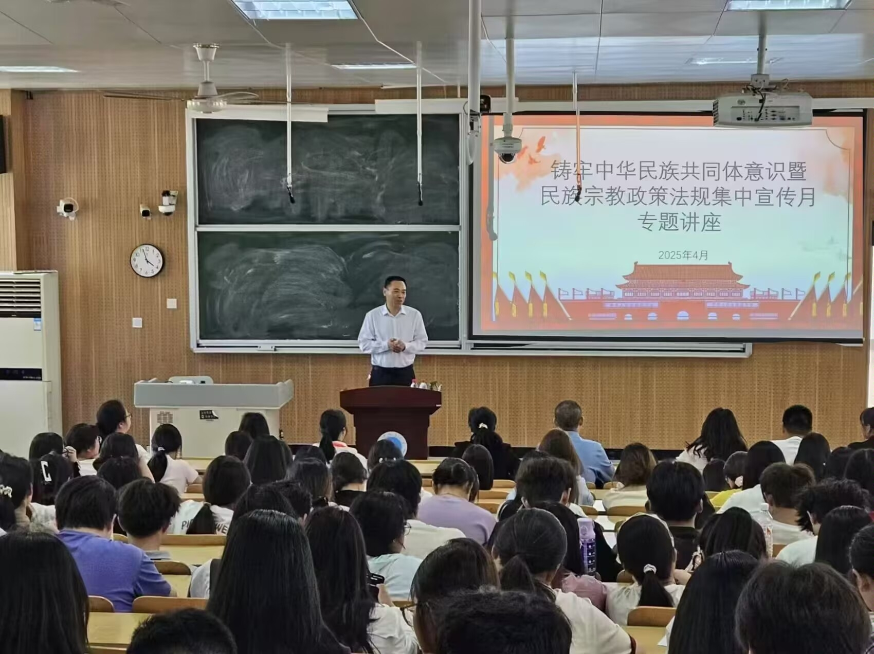 (通讯员 李赫)为深入学习宣传党的二十大和二十届三中全会精神,全面贯彻落实习近平总书记关于加强和改进民族工作的重要思想、关于宗教工作重要论述,4月28日,E8官网登录入口邀请E8官网登录入口党委统战部部长张守义为公司师生作党的宗教政策专题辅导。E8官网登录入口党政领导班子成员、全体辅导员,部分任课老师、员工党员、员工团干、入团积极分子等160余人参加学习。