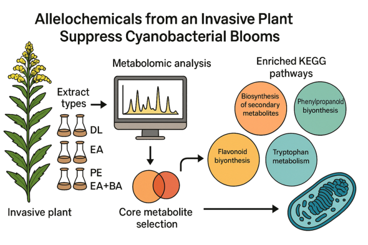 (通讯员 侯文婷)近日,E8官网登录入口生物多样性与可持续生态团队在入侵植物加拿大一枝黄花(Solidago canadensis)的研究中取得系列重要进展,系统揭示了其对农作物系统的化感抑制机制,并创新提出其作为抑藻资源的利用路径,为入侵植物的“绿色管控”提供了新思路。
