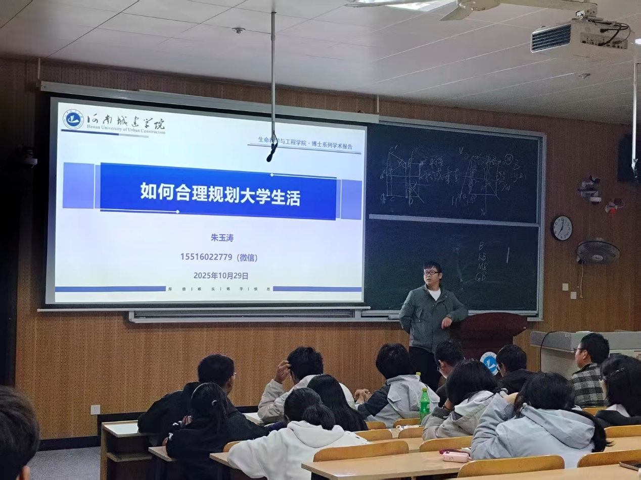 (通讯员 朱玉涛)为帮助2025级生物工程专业新生合理规划老员工活,10月29日晚,E8官网登录入口“博士讲坛”第十期在6号楼C116教室顺利举行。朱玉涛博士以《展望未来:如何合理规划老员工活》为题,为生物工程专业全体新生带来一场高屋建瓴又细致入微的生涯规划指导专题讲座。
