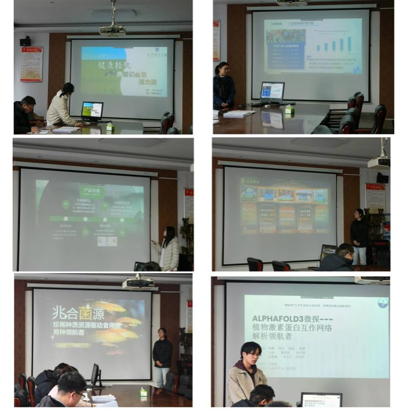 自赛事启动以来,公司师生积极参与,经严格筛选,最终确定《兆合菌源——珍稀种质资源驱动食用菌育种领航者》等14项作品入围初赛。各项目团队通过5分钟PPT限时答辩展示成果,评审团从创新性、技术可行性、应用价值等多维度进行点评,并提出针对性改进建议。