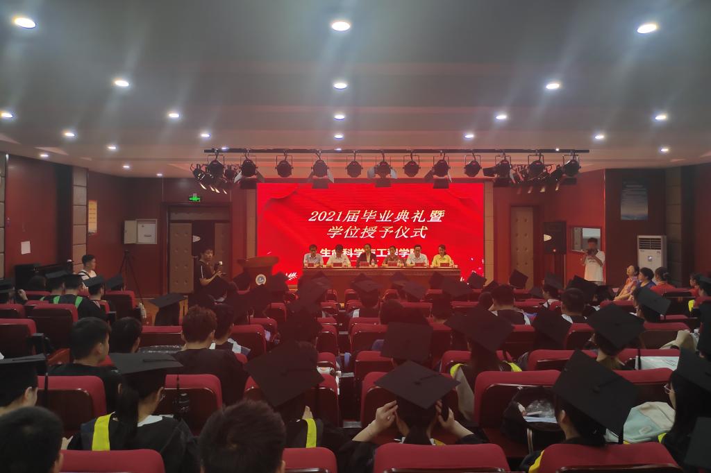 下午14:30,毕业典礼在雄壮的国歌声中拉开帷幕。副经理谢朝晖宣读《关于表彰2021年优秀应届毕业生的决定》,副经理朱涛宣读《关于授予2021届244名本科毕业生学士学位名单的决定》。