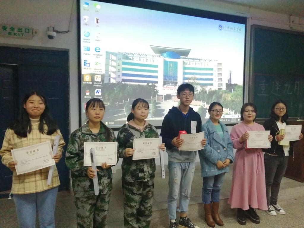 此次活动是以经典影视片段(中英文不限)配音为主,参赛选手可个人或小组相互配合参赛。活动现场,每组选手都在经过精心准备之后为大家带来了中英文听觉和视觉盛宴,展现了每位选手的才华。此次活动在让大家感受经典影视片段的同时,更体现了同学们的团队精神和优秀的表现能力,选手们表演生动,达到了预期的效果。经过激烈的竞争,最后由大三辅导员刘亚琼老师为优秀配音小组颁发荣誉证书,并合影留念。