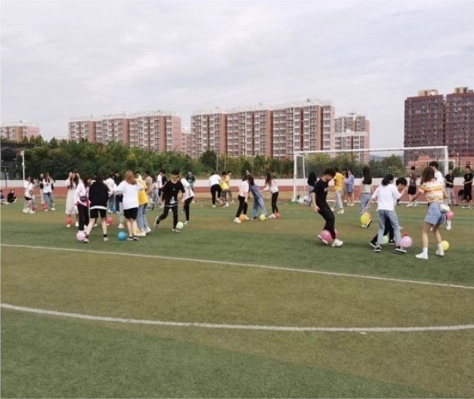 本次活动以“乘风破浪,同心同行”为主题。在活动开始前,主持人介绍本次活动流程以及中间游戏说明,激发同学们参与的积极性。进入游戏环节后,各位同学分组进行。本次活动共有蒙眼取水、待人接物、纵横天下、你画我画、圈地游戏、踩气球六个游戏。游戏过程中,每位同学都积极参与,操场上充满了欢声笑语。活动结束后,由工作人员统计出各组的成绩并排出排名,获得第一名的组,每人可获得奖励的小奖品,而最后一名的组将接受惩罚。活动最后全体成员进行了合影留念。