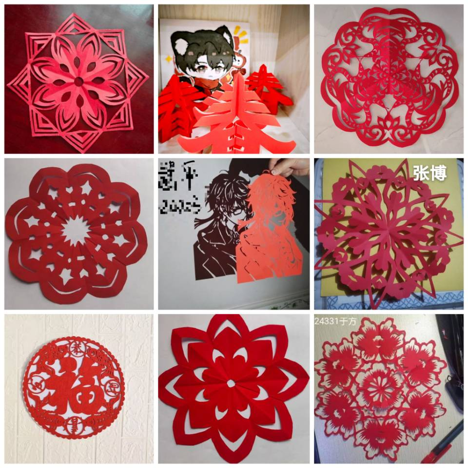 本次活动涵盖了 “剪纸传情,共筑美好” 剪纸活动、书法撰写及 “年夜饭大比拼,寻找年‘味’”活动,内容丰富,年味十足。剪纸活动中,参赛同学们围绕 “传承民间艺术,弘扬剪纸文化” 主题,充分发挥创意与技巧,将对传统文化的理解和对新年的美好愿景巧妙地融入到剪纸作品中。书法撰写活动,同学们挥毫泼墨,各展所长。他们以笔为媒、以墨传情,在一撇一捺间书写着对传统文化的热爱与传承。在“年夜饭大比拼,寻找年‘味’”活动中,参赛选手通过照片,紧扣团聚、新年、年夜饭等元素,从不同角度展现家庭的温暖与新年的喜悦。