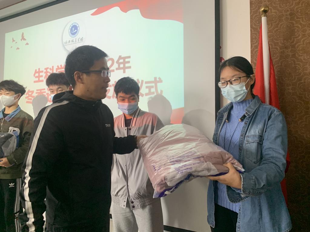 在发放衣物的过程中,冯兴华副书记亲切询问同学们的生活状况以及是否还存在困难,并深入了解员工家庭经济情况、受助需求,关心慰问员工学习生活、身心健康情况等,同时勉励员工坚定理想信念,树立远大理想,努力实现自身价值。
